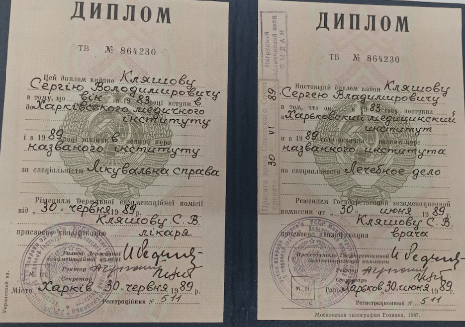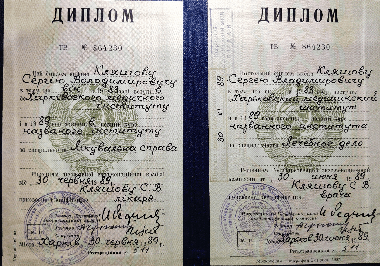 - 1989 г. — закончил лечебный факультет Харьковского медицинского института.