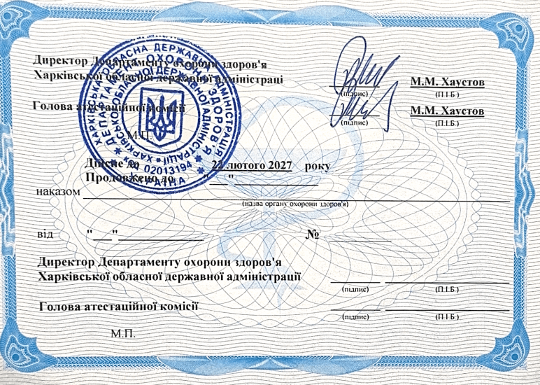 Врач-терапевт первой категории, врач общей практики – семейной медицины второй категории